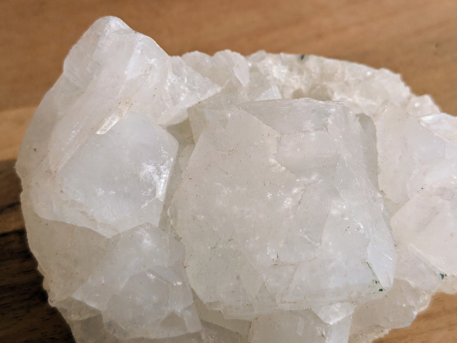 Geologically, apophyllite is a hydrated potassium calcium silicate mineral that typically forms as prismatic or pyramidal structures. It is usually found in close proximity to volcanic rocks such as basalt. It crystallizes in hydrothermal solutions rich in silica and other elements needed. This crystal highly sought after for its well defined and beautiful crystal structure.