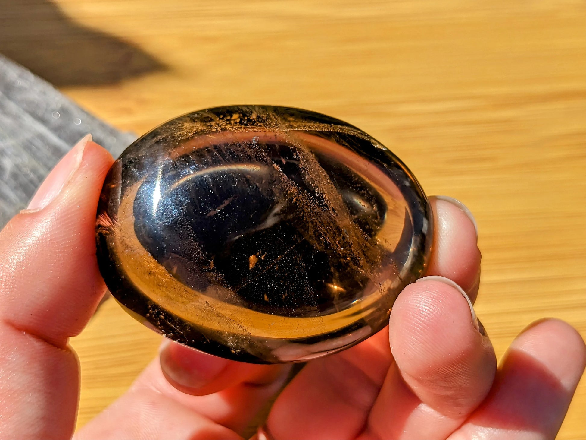 - Smoky Quartz Palm Stone - this crystal is deeply grounding and protective. Its dark and smoky appearance gives it associations with Samhain. Use it during this time to connect with the Earth's slowing rhythm.