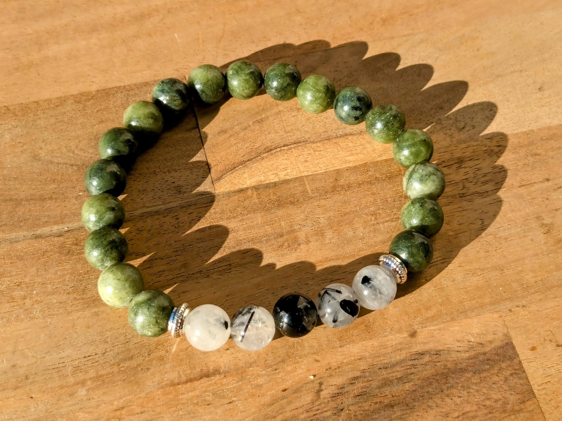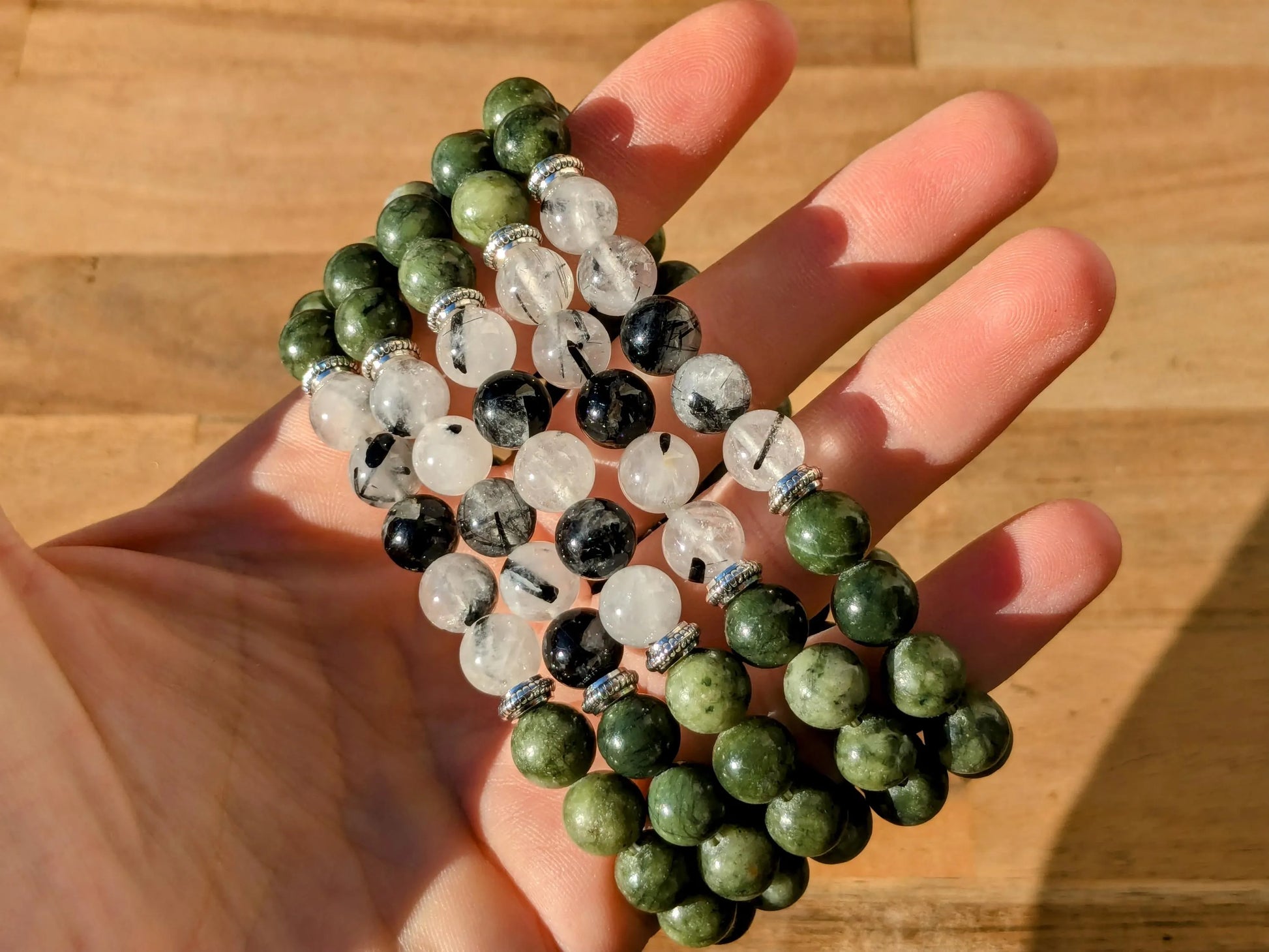 Serpentine & Tourmilated Quartz Stretch Bracelets